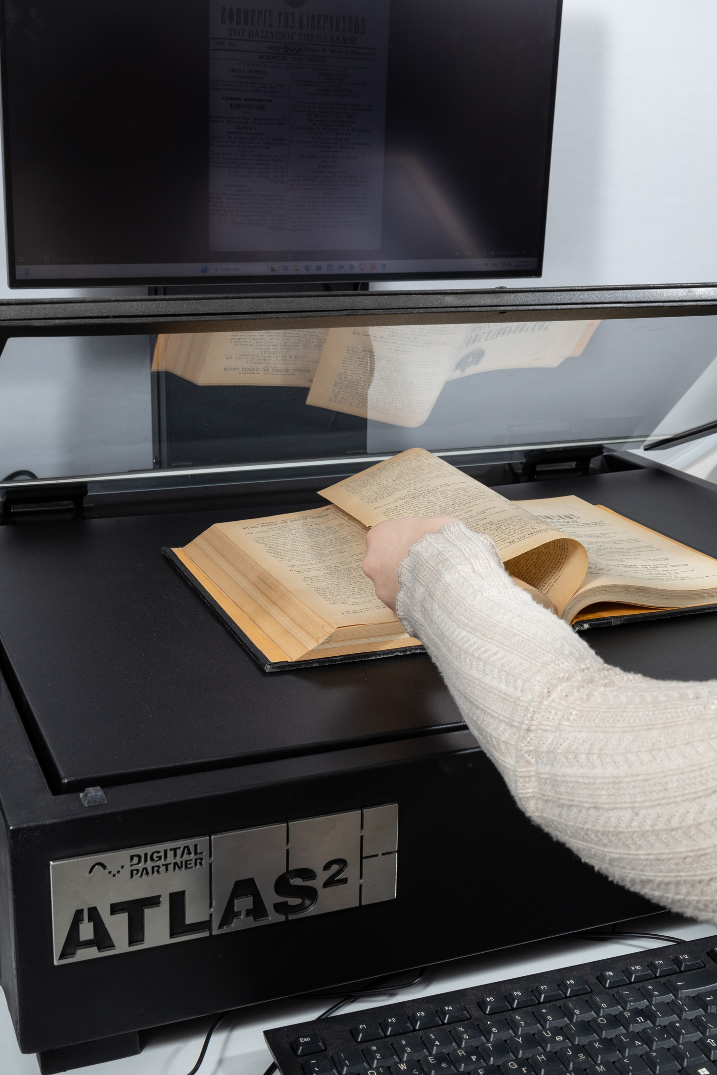 • Atlas II has a flat surface for digitizing documents up to 45 X 65 cm in size and up to 20 cm thick with 10 cm height adjustment. Documents during digitization are kept as flat as possible, without unwanted curving.